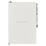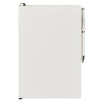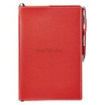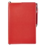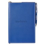 Despite our love of technology, our favourite way to take notes is still the trusty journal. With this Bradford soft cover refillable journal combo, its easy to see why. Keep your business card at your fingertips in the sleeve pocket of the cover, and never struggle to find a pen the stylish G1103 Lara plastic pen fits snuggly in the adjustable vinyl pen loop. It wont take you long to find your place among the 160 ivory lined pages using this notebooks black ribbon bookmark. ComponentsG1103′,’ST442. 5.75″ L x 8.25″ W