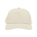 Made Of 100% Cotton 2×2 Canvas With 100% Polyester Rope. Lightweight. Water-Resistant. 5 Panel, High Profile. Structured Crown & Pre-Curved Visor.