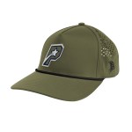 97% Polyester, 3% Spandex. Lightweight. Water-Resistant. 5 Panel, High Profile. Moisture Wicking Material. Structured Crown & Pre-Curved Visor. UPF 50+ Protection.