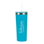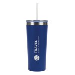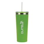 Designed to be lightweight yet durable, the Bremen 24 oz. Tumbler is ideal for everyday use. Its ergonomic shape fits comfortably in your hand and fits most standard car cup holders, making it a perfect companion for your daily commute, office environments, or outdoor adventures. This reusable tumbler features a double wall construction with stainless steel exterior and an eco-friendly 50% recycled polypropylene inner wall. The push-on translucent lid features a spill-resistant slider closure allowing you to confidently take your tumbler on the go and the included drinking straw provides you a hassle-free drinking experience even when you are on the move. FDA compliant and BPA Free. Complies with Prop 65. 3 5/8″ W x 10 1/4″ H x 3 1/2″ D