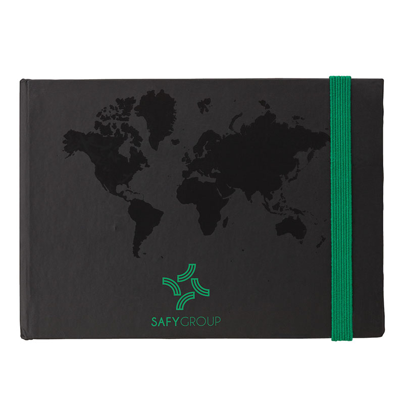 Hard cover booklet with 5 color flags, 4″ x 3″ and 2″ x 3″ sticky notes, elastic closure and world map design on cover. Complies with Prop 65. 4 3/8″ W x 3 1/8″ H x 5/8″ D