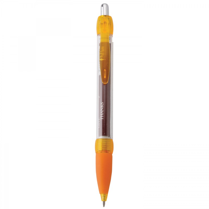 Plastic push-action pen with customized double-sided imprint on a retractable banner. 4cp imprint included on front/back. . Banner design not included in the price. 0.0000″ L x 0.0000″ W x 0.0000″ H