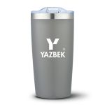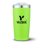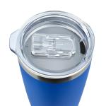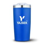 Powder-coated tumbler- Double wall Stainless Steel- inner Copper lining for effective insulation- 6 distinct matte finish colors- Clear push-in lid, perfect for on-the-go. 3.62″ W x 7.43″ H