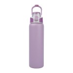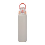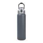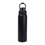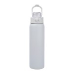 Stay hydrated wherever the day takes you with the Brooke 28 oz. Water Bottle. Engineered for performance and everyday convenience, it is crafted with double wall stainless steel construction and a recycled 18/8 inner wall to deliver reliable durability while supporting eco-conscious choices. The vacuum-insulated design keeps beverages refreshingly cold for up to 24 hours, all without condensation thanks to its sweatproof powder coat finish. The screw-top lid features a push-lock closure and a chug spout for quick, easy sipping and the convenient integrated hinged carry handle doubles as a lid-lock. Its soft TPR grip makes it easy to open for cleaning, while the slim profile ensures it fits most car cup holders. FDA Compliant & BPA Free. Complies with Prop 65. 3 1/8″ W x 11 3/8″ H x 3 1/8″ D