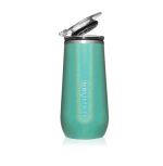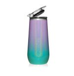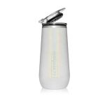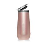A champagne flute with a drink-through, flip top lid and BevGuard Technology. Double the size of a traditional champagne flute. Keeps drinks cold and carbonated up to 5x longer. Available in Matte and Gloss styles. Engraving area front side (with BruMate logo) 1 1/4″ x 2 1/4″. Engraving area back side 2 1/4″ x 3″. Minimum order of 12 pieces.