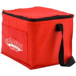 Keep your lunch or favorite beverages cool with this cooler bag. Custom coolers offered in a variety of colors features a 36″ long handle. Features a zippered main compartment with front slip pocket and holds 6 cans. Meshed side pocket for your favorite water bottle. Wipe Clean. Screen printed imprint centered on the front pocket. Complies with Prop 65.