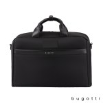The Essentials Briefcase from Bugatti is designed for functionality, durability, and convenience. Made of water repellant polyester with vegan leather trim, it provides a lightweight yet sturdy solution for carrying your work essentials. The padded compartment fits most 15.6 laptops, keeping your device protected during commutes or travel. The zippered main compartment offers secure storage, while the interior features multiple organizer pockets for documents, accessories, and other essentials. An easy-access front pocket provides space for frequently used items, ensuring you can reach them quickly when needed. For travelers, a trolley pass-through allows the briefcase to attach easily to rolling luggage. Reinforced carry handles make it comfortable to carry by hand, while the removable and adjustable shoulder strap provides a hands-free carry option. Complies with Prop 65. 16 1/4″ W x 10 1/2″ H x 4 1/2″ D