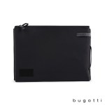 Crafted from 100% durable nylon with stylish vegan leather trims, the Bugatti Madison Laptop Sleeve offers both functionality and sleek design. It features a zippered laptop compartment to protect laptops up to 15.6″ and a second zippered compartment with RFID-blocking zippered pocket. The vegan leather side handle provides a comfortable carrying option, while the multiple interior organizer pockets help keep your essentials neatly arranged, making this the perfect laptop sleeve for work, travel, or everyday use. Complies with Prop 65. 11″ W x 15 3/8″ H x 1 5/8″ D