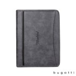 Discover the Bugatti Valentino Letter Size Writing Case an elegant and functional solution to stay organized while on the move. Crafted from grey vegan leather, this case boasts a modern zip-around closure for effortless access and an interior tablet compartment, pen loops, zippered pocket, and a built-in organizer with card slots and ID window, providing ample space for your essentials. The included 20-page Bugatti lined notepad adds extra convenience for your writing needs. With its sleek design and quick-access front pocket, the Bugatti Writing Case is a must-have for business professionals seeking a perfect blend of style and practicality. Complies with Prop 65. 10″ W x 13″ H x 1 1/4″ D