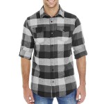 60% Cotton/40% Polyester Plaid Flannel Shirt. 2 Chest Pockets. Button Pocket Flaps. Half Back Yoke. Hemmed Bottom. Button Cuffs. Roll Up Sleeves With Placket.