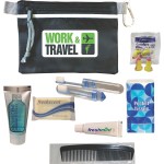 Travel Kit, Compact Design, Shampoo Bottle, Travel Toothbrush, Toothpaste, Tissue Pack, Comb, Ear Plugs, Business Travel, Leisure Travel. 5.5″ H x 7″ W