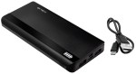 LED battery indicator Power bank capacity: 10000 mAh Dual standard USB Output Wall charger not included Built-in over-charge protection Approx. power bank recharge time: up to 4 hours Micro/Type-C Input: 5v/2A Dual USB Output: 5v/2A Includes Micro USB charging cable and instruction manual. 5.375″ D x 2.75″ W x 0.625″ H