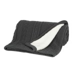 Our Cable Knit Sherpa Blanket. With a cabin-chic, ultra soft, 100% acrylic cable knit top side and a plush, softer than a lamb, 100% polyester sherpa side you will be utterly encased in 100% pure bliss. Choose from standard embroidery options and a hidden zipper for embroidery on one side you can give your logo a cozy makeover. The blanket even comes with a sleek plastic zip carrying bag for easy toting and storage. 50″ H x 60″ L