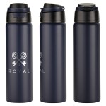 Stay refreshed and eco-conscious with our Cabrio 24 oz Recycled Stainless Steel Vacuum Insulated Bottle. Designed with double-wall vacuum insulation, it keeps your beverages hot for 6 hours and cold for 12 hours. The convenient push-button flip-top lid allows for easy access, while the rotating carrying ring offers added portability. Crafted from BPA-free, FDA-certified materials, this durable bottle is perfect for on-the-go hydration. Please note, it is hand wash only to maintain its sleek finish and performance. Complies with FDA, Prop 65. 10.75″ H x 2.875″ Diameter