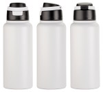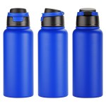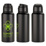 Stay refreshed and eco-conscious with our Cabrio 32 oz Recycled Stainless Steel Vacuum Insulated Bottle. Designed with double-wall vacuum insulation, it keeps your beverages hot for 6 hours and cold for 12 hours. The convenient push-button flip-top lid allows for easy access, while the rotating carrying ring offers added portability. Crafted from BPA-free, FDA-certified materials, this durable bottle is perfect for on-the-go hydration. Please note, it is hand wash only to maintain its sleek finish and performance. Complies with FDA, Prop 65. 10.625″ H x 3.625″ Diameter