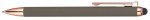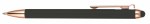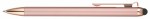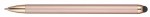 Soft-touch, Metal barrel retractable ballpoint/stylus with polished Rose Gold accents. This elegant metal pen features a stunning rose gold finish, making it the perfect choice for executives, realtors, and medical professionals. With its sleek, sophisticated design, it combines both style and functionality. The pen also includes a built-in stylus, offering seamless interaction with touchscreens, ideal for professionals on the go. Whether signing important documents or navigating your devices, this pen provides both a smooth writing experience and versatile functionality, making it a must-have accessory for any modern professional! Additional optional imprint locations and sizes are 1¾” x 5/16 right/left of clip (laser engraved), 1″ x 5/16″ inline with clip (laser engraved), and 1¾” x ½” (XL laser engraved). 5.5″ L x 0.39″ W x 0.58″ H