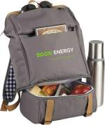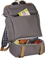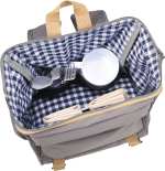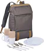Enjoy the great outdoors in style with the 11pc Cafe Picnic Backpack for Two. The main compartment has a wide opening to easily access the picnic pieces. The separate PEVA insulated cooler storage compartment fits 6 cans. Set includes 2 each: 8” plates, mugs, forks, spoons, and napkins. Perfect for tailgating, a trip to the park, and everything in-between! A great companion piece is the Picnic Blanket (1070-15). 6.25″ D x 9.50″ W x 16.50″ H