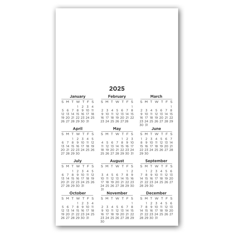 A calender magnet. Custom imprint area is 2 1/4″ h x 3 23/32″ w. 3.90625″ W x 6.9375″ H x 0.01″ D