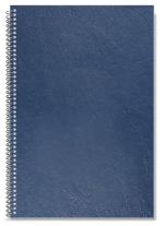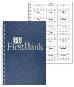 This notebook features a leatherette cover, white card stock printed with a 2 year stock calendar in black ink, and 50 Lb. white offset sheets with light gray rules on both sides. Comes coil bound on left side in silver. 6″ W x 9″ L