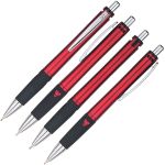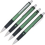 Writing is a Breeze With This Pen! Just Add Your Custom Logo Today. Matte barrel finish. Retractable action pen . Detailed ribbed rubber grip. Gel ink is mess free and smudge proof | Our gel-ink pens have a removable wax tip to prolong the shelf life of the ink. Customize with your company name & logo. Complies with Prop 65.