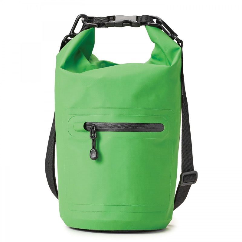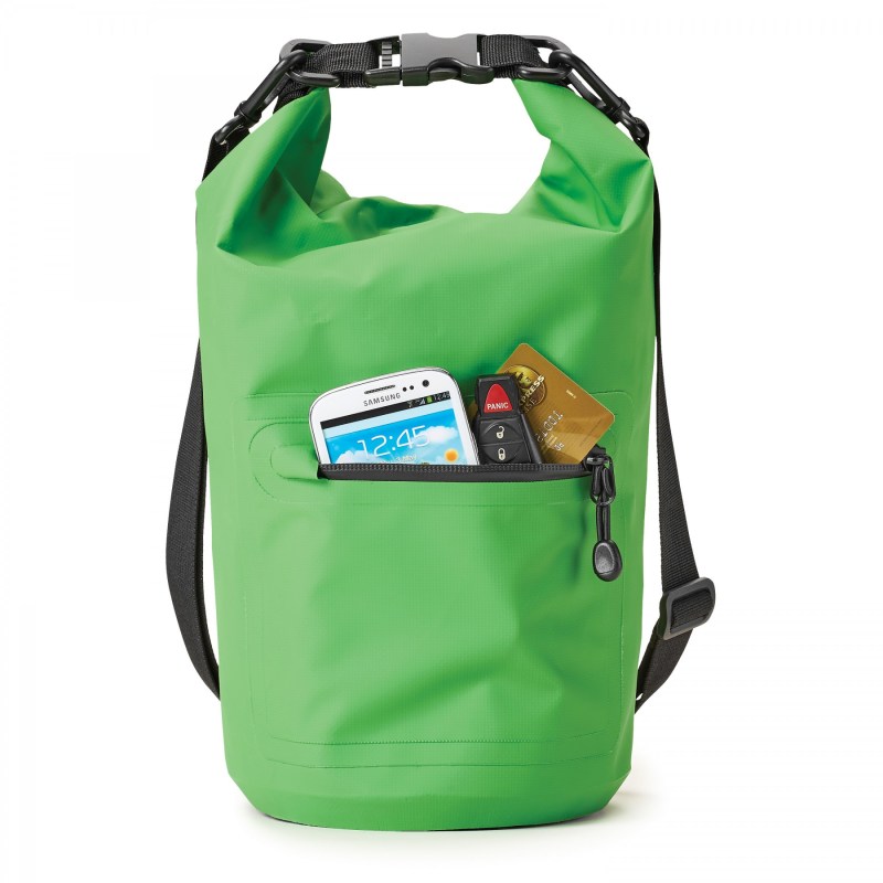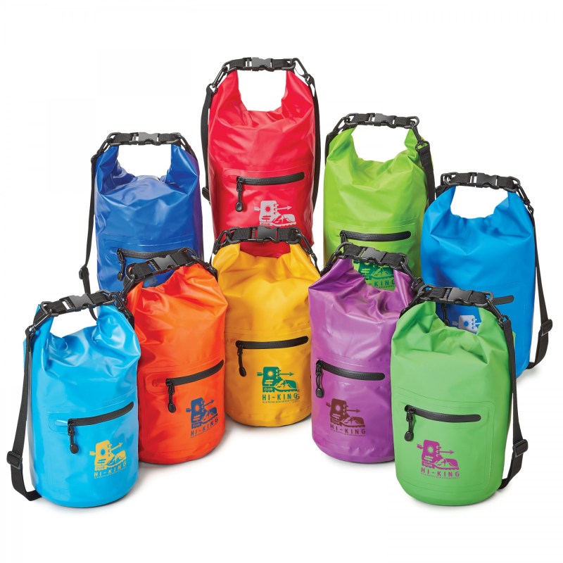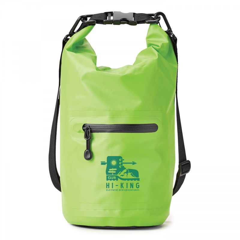 Roll down the top. Secure the snap closure ensuring your valuables stay dry while camping, hiking or at the waters edge. Use this 5L bag to store your phone, charger and wallet. Production and Lead Time BY SEA 14-16 weeks delivery after approval of art F.O.B. Montreal, QC. 7.0866″ L x 7.0866″ W x 18.8976″ H