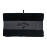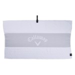The Callaway Tour Towel is a popular golf accessory designed to help golfers keep their equipment and hands clean and dry on the course.Multi-textured Design: It’s crafted with various textures to effectively handle all cleaning needs, from wiping down clubs and balls to cleaning grips and even your hands and face.Quick Snap Attachment: This convenient feature allows for easy and secure attachment to your golf bag, ensuring the towel is always within reach. The attachment is a durable rubber strap with a snap.The Callaway Tour Towel typically measures 35″ x 20″ providing ample surface area for comprehensive cleaning.It is made with ultra-absorbent microfiber to effectively absorb sweat and dirt.
