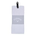 The Callaway TriFold Towel is a popular accessory for golfers, designed for convenience and effective cleaning on the course. Here are its key features:Multi-Textured Fabric: It boasts a multi-textured surface to handle various cleaning needs, from wiping sweat to cleaning clubs and golf balls.Material: Primarily made from 100% cotton, which provides a soft, plush, and highly absorbent surface.Dimensions: When unfolded, it measures 16″ x 21 inches, offering a good balance between coverage and compactness.Tri-Fold Design: The “tri-fold” design allows it to be easily folded for compact storage and convenient carrying on your golf bag.