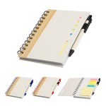 The Camber Spiral Notebook with Colorful Sticky Notes combines everyday function with eco-friendly materials. It includes 70 lined sheets made from recycled FSC® paper and 25 colorful sticky notes for quick reminders and organization. The white card cover features a bamboo accent spine, while top spiral binding allows pages to lay flat. An integrated pen loop with matching pen makes it ideal for offices, events, classrooms, and sustainable promotions. Complies with Prop 65. 5.375″ L x 0.375″ W x 7″ H