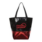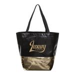 Two-toned non-woven PP tote bag with metallic finish- Fashion-forward, bold design that makes an impression- Lightweight design won’t weigh you down!- Foldable for convenient storageProduct Size: 17″ x 14″ x 7.5″. 17.0″ W x 14.0″ H x 7.5″ D
