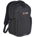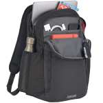 The CamelBak DEN 15” Laptop Backpack is made from coated RPET polyester. A front zippered pocket offers organization and extra storage for quick access. The main compartment includes a 15″ padded laptop sleeve. There are two side pockets for water bottles or extra gear. Trolley strap attaches to your luggage or use the padded, adjustable shoulder pads to carry this bag. Through a partnership with 1% For The Planet, one percent of sales of all EcoSmart® products are donated to environmental nonprofits. 6.00″ D x 11.50″ W x 18.00″ H