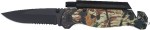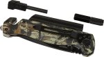 Includes a pocket clip and Nylon pouch Features a seatbelt cutter and window hammer designed for fast extraction Equipped with a two stage blade that is both straight and serrated Removable miniature sized flashlight with magnet and a flint for manual fire starting Camo designed. 1.75″ D x 5″ W x 0.75″ H