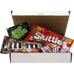 Introducing our premium shipping-grade mailer box, filled with an assortment of delicious treats. Inside, you will find one package each of Skittles, M&M’s, and Pop Rocks, along with five pieces of Bazooka Bubble Gum. Get ready to indulge in a perfect blend of sweet and tangy flavors, all conveniently packaged in our high-quality box for a delightful unboxing experience. Complies with Prop 65. 7 3/8″ L x 1 3/8″ W x 7 3/8″ H