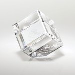 Small corner block award made from optical crystal. Complies with Prop 65. 2 3/8″ W x 2 3/8″ H x 2 3/8″ D