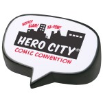 Caption Bubble Shaped Polyurethane Stress Reliever. White stress relievers may discolor over time. Please store them in their plastic bags away from direct sunlight and distribute within 3 months. Complies with ASTM, CCPSA, CPSIA, Prop 65. 3.3125″ L x 1.75″ W x 2.5625″ H