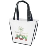 Stand out from the crowd with the Carnival Tote’s unique trapezoid shape. The Carnival Tote is made with 80 GSM premium non-woven material, black handles, black accent piping, and plastic bottom insert. Handles measure 1″W x 18″ long. 12″ W x 4″ D x 10″ H