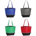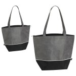 Carnival RPET Cooler Tote is constructed of eco-friendly 80GSM recycled P.E.T. non-woven from 100% post-consumer water bottles. Large volume interior compartment, with zippered closure, has PE foam and aluminum foil insulation and a 6″ gusset. Gray woven trim separates black bottom from colored top and features 24-inch non-woven carry handles that match the color of the bag. Perfect for lunch, picnics and concerts. GRS Certified. Complies with FDA, Prop 65. 15.375″ L x 6″ W x 12.5″ H