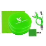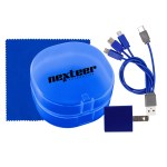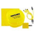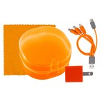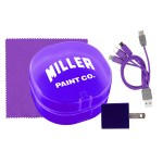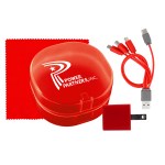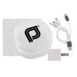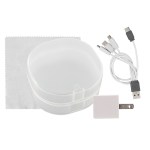 Elegantly designed with a rounded plastic case featuring a convenient snap closure, this UL Square USB Wall Charger boasts a UL Listing and patented technology. Accompanied by a vibrant 5 x 5 recycled PET cleaning cloth, this set also includes a colorful 4-in-1 charging cable with multiple USB adapters. Compatible with IOS devices, Micro USB, and Type C USB, this innovative charging solution is not only patented but also offers USB and Type C USB input for added versatility. Elevate your charging experience with this sleek and efficient set. Complies with CE, cUL, FCC, Prop 65, UL. 2.75″ L x 2.75″ H