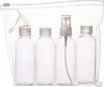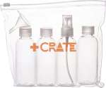 The Bullet Carry-On Kit is a zip-top resealable pouch for TSA-friendly travel. It includes three 80mL refillable bottles, one 80mL refillable spray bottle and a mini funnel. Bottles are not available for imprint. Bottles do not ship inserted into the pouch. 1.50″ D x 7.31″ W x 7.13″ H