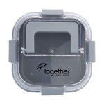 Easily transport your meals in style with this sleek gray square lunch container featuring a clear clip top and a convenient gray handle on the lid. Crafted from recycled PP, this container is not only environmentally friendly but also freezer safe and BPA-Free for your peace of mind. While it’s not recommended for use in the dishwasher or microwave, it’s a breeze to clean by hand. Make a sustainable choice for your lunchtime routine with this chic and practical lunch container. Complies with FDA, Prop 65. 6.5″ L x 6.5″ H x 3″ W