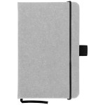 ***CLEARANCE – Available only while supplies last. Earth-conscious clients will love our Carson Recycled PU Leather Notebook – its compact A5 size makes it ideal for jotting notes at home, at work, or on the go. The hard cover is made from 75% recycled leather and 25% plastic. Inside, the 80 sheets (160 pages) of 70 gsm renewable, recycled paper are ivory colored and lined. This stylish notebook features a ribbon marker, stitched binding, elastic strap and pen loop (pen not included). Your logo will be . Complies with Prop 65. 5.51″ H x 3.54″ W x 0.59″ D