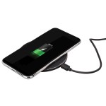 Thin, 10 watt wireless charger pad with non-slip Silicone surface. LED indicator glows blue while charging. Overcharge protection. Compatible with most smartphone devices. Input: 5V/2V max. Output: 5V/1A max. Charges through most protective cases. Wall charger not included. Includes micro USB charging cable and manual. NOTE: If your device is not compatible with wireless charging you may require external wireless charging receiver or receiver case. 0.25″ H x 3.875″ W x 3.875″ D