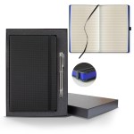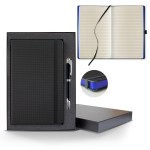 This classy journal features a black textured cover paired with our Ivory lined pages with gilt edges. Timeless and sophisticated. Add a sleek black gift box to make this the ultimate gift! Size: 5 1/4″ x 8 3/8″ 224 college ruled FSC®lined Ivory pages. Silver, Black or Red gilt edges. All black elastic band, pen loop and ribbon marker. FSC MIX CQ-COC-000479. 5.25″ W x 8.38″ H x 0.5″ D