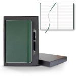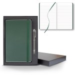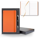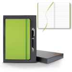 The Color Laser notebook gift set is designed seeking a clean simplicity, but its innovation lies in details. Head to class in style with this medium sized note-taker! Featuring our most popular cover material, which is a smooth-soft texture that’s often mistaken for leather and comes in a sleek black gift box including a black or gunmetal pen. Red, white, and blue pens also available upon request. You can choose from an assortment of bright vibrant cover colors and a white trim on the edge that make it pop! It makes a great giveaway that is sure to remind recipients of your company’s customer service, plus it will put your message in front of them on a daily basis! Size: 5 1/4″ x 8 3/8″ with 224 White college ruled lined FSC ® certified pages with gray print. Matching ribbon marker and elastic band. FSC MIX CQ-COC-000479. 5.28″ W x 8.38″ H x 0.5″ D