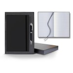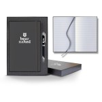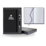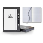 Take your business to the next level with this Matra Banded Medium Journal! The elastic band closure matches the color of the cover and holds together 192 white pages with gray lines. Inside is a silver ribbon to help you keep your place. It measures 5 1/4″ x 8 3/8″ and is made of polyurethane. Add your logo with one of our many imprinting methods to make this your own. This giftset comes in a gift box with a metal pen. Pens are available in black, gun metal, white, blue, or red. The gift box and the pens can be decorated for an additional charge. Set this out at your tradeshow booth and get the crowd talking! FSC MIX 70% CQ-COC-000479. 5.25″ W x 8.375″ H x 0.5″ D