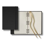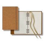 Get a promotion that speaks volumes to your customers by investing in the Tucson Ivory Hybrid Medium Journal! Measuring 5 3/4″ x 8 9/16″, this journal features 240 ivory pages printed with gray lines, bound together by three enclosed triple ring wires that are hidden by the cover when closed. It’s also equipped with a matching elastic band and gold ribbon markers. Add a brand name or logo and hand this out at your next tradeshow to have recipients advertise with every use! FSC MIX 70% CQ-COC-000479. 5.25″ W x 8.5625″ H x 0.5″ D