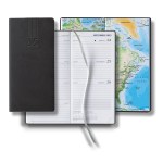 Stay on top of important dates and appointments with this pocket-sized upright weekly planner! Measuring 3 3/8″ x 6 13/16″, this planner features our most popular cover which has a smooth soft texture that’s often mistaken for leather. Other features include 144 white pages printed in modern gray and blue, a silver ribbon marker with printed year date, perforated page corners and reference pages that include 4-color international maps, and an extensive reference section. FSC MIX 70% CQ-COC-000479. 3.375″ W x 6.8125″ H x 0.375″ D