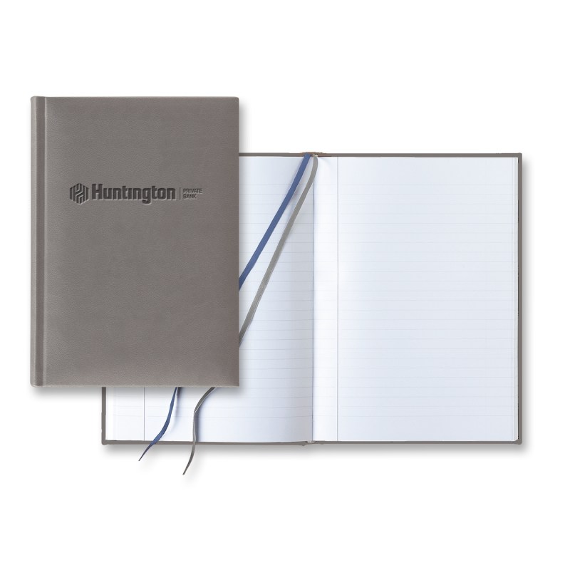 Fill in the most important details and take notes inside this stylish Tucson journal! This large journal features a smooth soft cover that can be mistaken for leather! This is our 67625, but with less pages. Customize each journal with a brand name or logo to create a corporate gift sure to generate new business! Size: 7″ x 9 11/16″ with 192 white wide ruled lined pages printed in modern gray and two ribbon markers in blue and gray. FSC MIX CQ-COC-000479. 7.0″ W x 9.69″ H x 0.75″ D