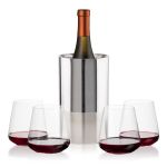 Elevate any pour with the Catania Wine Cooler & Wine Set, featuring a sleek, polished stainless steel cooler that keeps your favorite bottle perfectly chilled alongside elegant wine glasses for a refined table moment. The cooler’s modern silhouette delivers standout style from countertop to patio, while the crystal-clear glasses balance comfort and sophistication for reds, whites, or rosés. Available with a variety of stemmed and stemless wine glass options, this set makes an effortlessly versatile gift—or a timeless upgrade to your own barware.