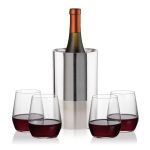 Elevate any pour with the Catania Wine Cooler & Wine Set, featuring a sleek, polished stainless steel cooler that keeps your favorite bottle perfectly chilled alongside elegant wine glasses for a refined table moment. The cooler’s modern silhouette delivers standout style from countertop to patio, while the crystal-clear glasses balance comfort and sophistication for reds, whites, or rosés. Available with a variety of stemmed and stemless wine glass options, this set makes an effortlessly versatile gift—or a timeless upgrade to your own barware.