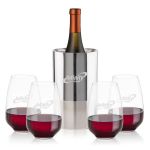 Elevate any pour with the Catania Wine Cooler & Wine Set, featuring a sleek, polished stainless steel cooler that keeps your favorite bottle perfectly chilled alongside elegant wine glasses for a refined table moment. The cooler’s modern silhouette delivers standout style from countertop to patio, while the crystal-clear glasses balance comfort and sophistication for reds, whites, or rosés. Available with a variety of stemmed and stemless wine glass options, this set makes an effortlessly versatile gift—or a timeless upgrade to your own barware.